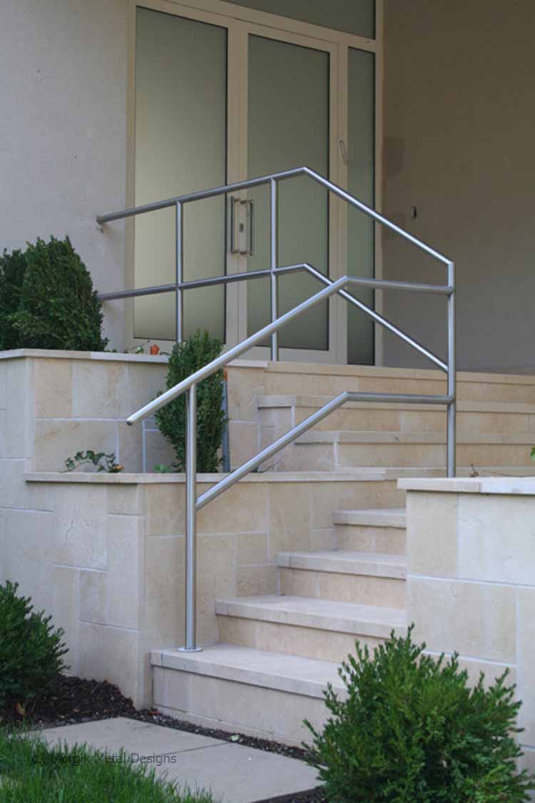 Custom stainless steel pipe rail for entrance to home. Finish; Brushed Satin